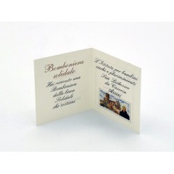 Scatolina portaconfetti misura cm 6 x 6 cm con immagine bimbo e frase motivazionale completa di confetti e bigliettino