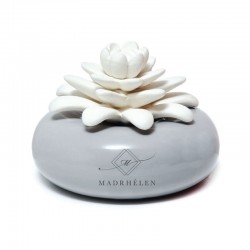 Profumatore per ambiente con base tonda in porcellana e parte superiore in gesso a forma di fiore. Madrhélen - Linea "Intense"