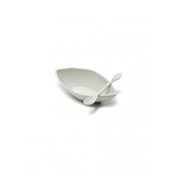 Piatto foglia 15x8x5 in porcellana con cucchiaino,può essere usata come antipastiera o zuccheriera
